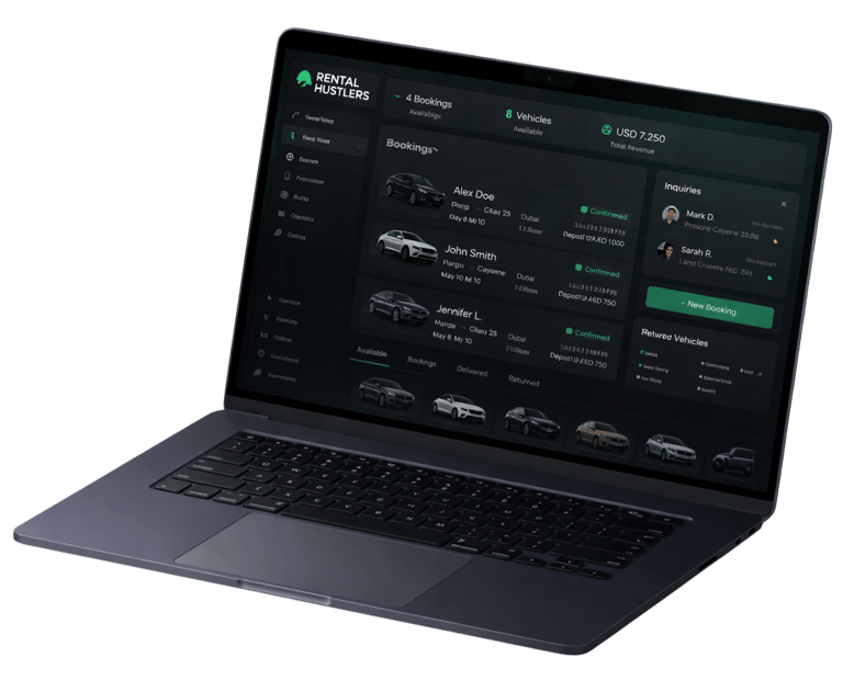 Rental Hustlers ti omogućava da zaradiš u Dubaiju iz fotelje. Ti gradiš Instagram brend, vodiš prodaju i uzimaš profit — mi obezbeđujemo premium vozila i naš tim isporučuje auto gde treba.
